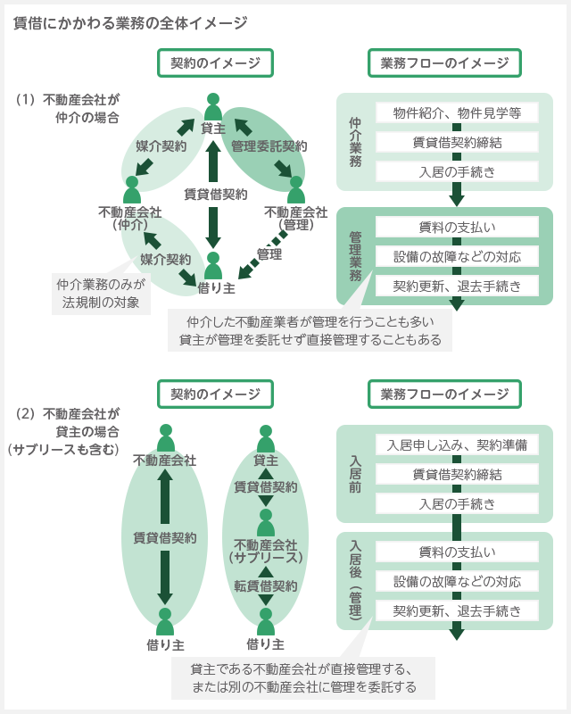 入居者募集の段階では、「仲介会社」として、入居後は「賃貸管理会社」として付き合う事となります。